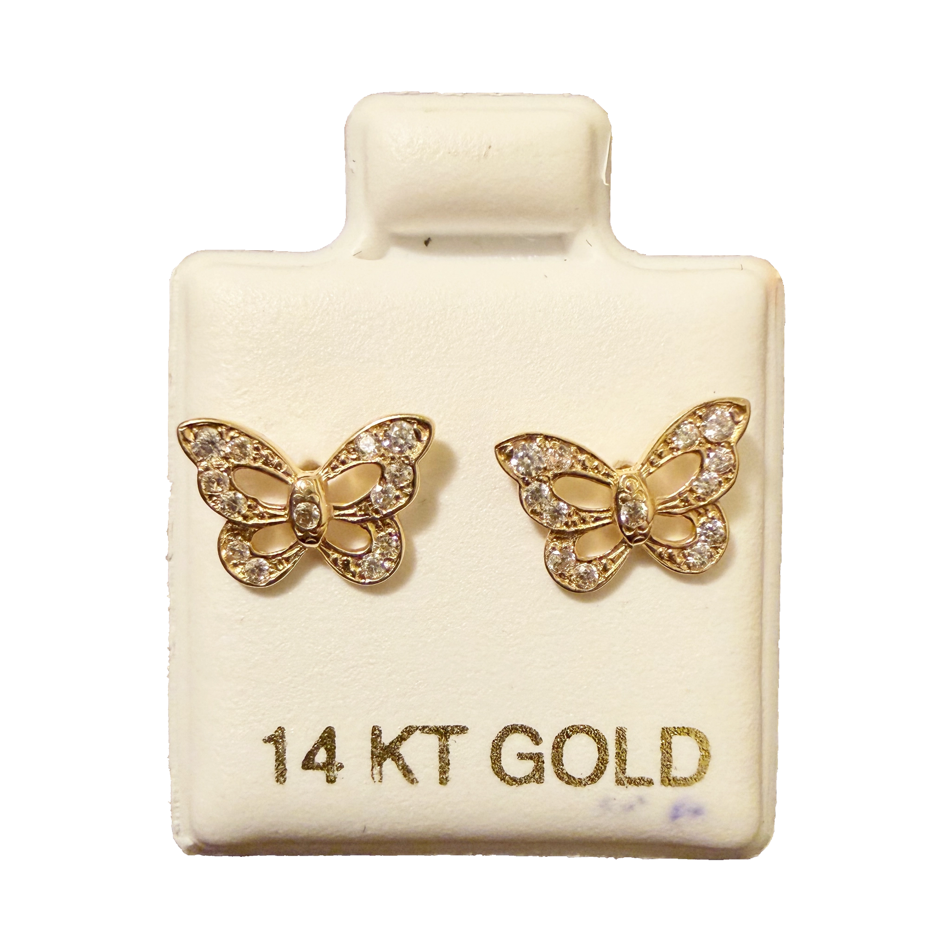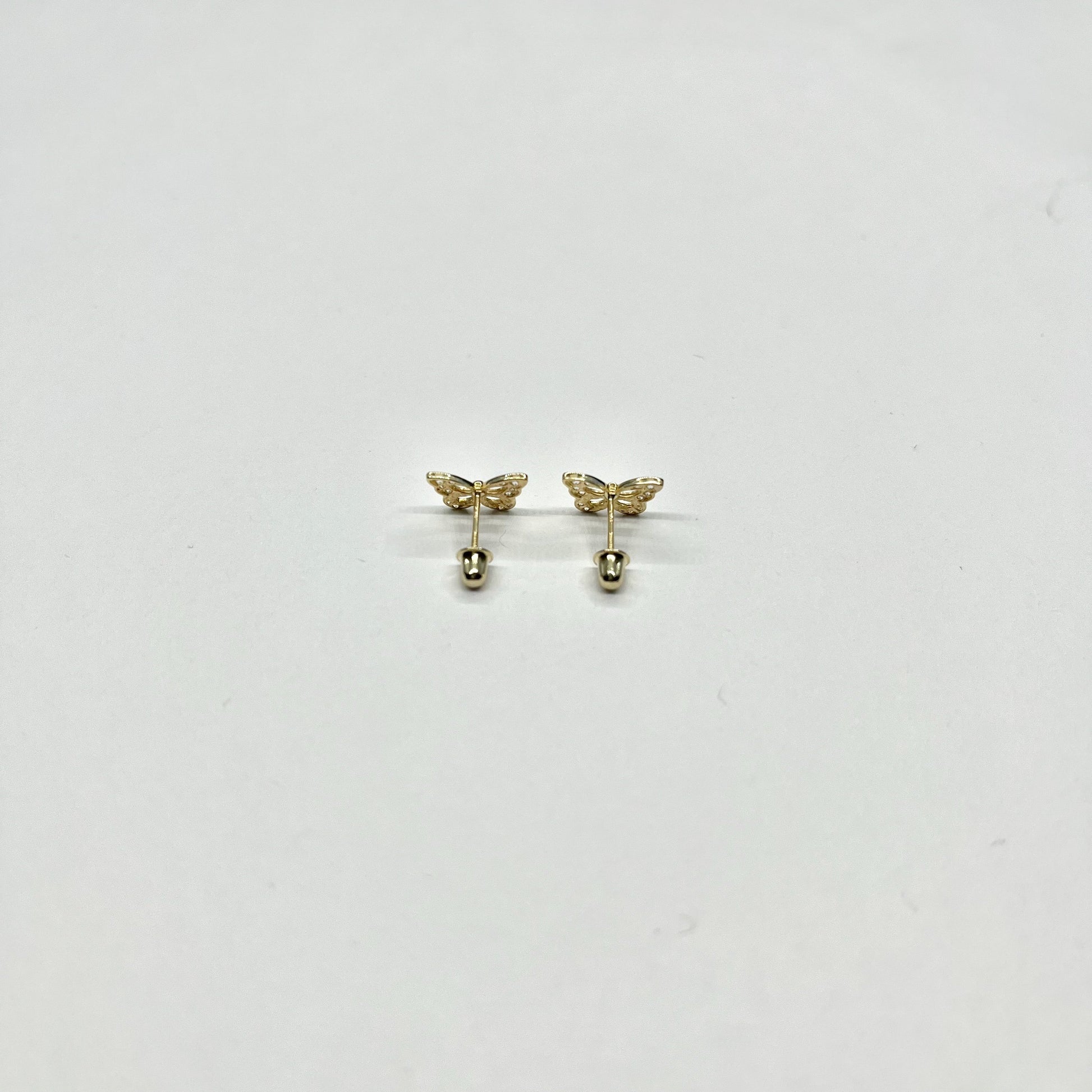 14K Gold CZ Butterfly Stud Earrings