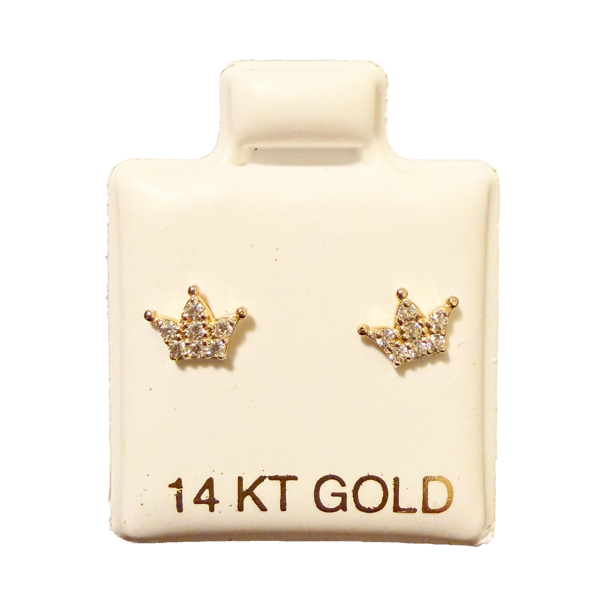 14K Gold CZ Mini Crown Stud Earrings