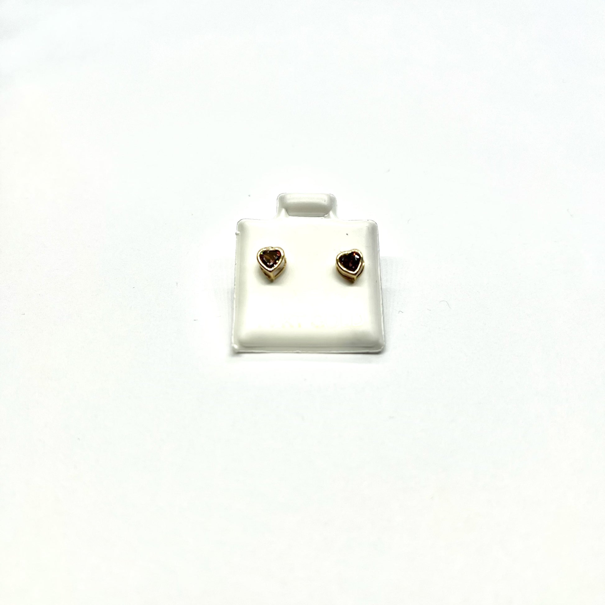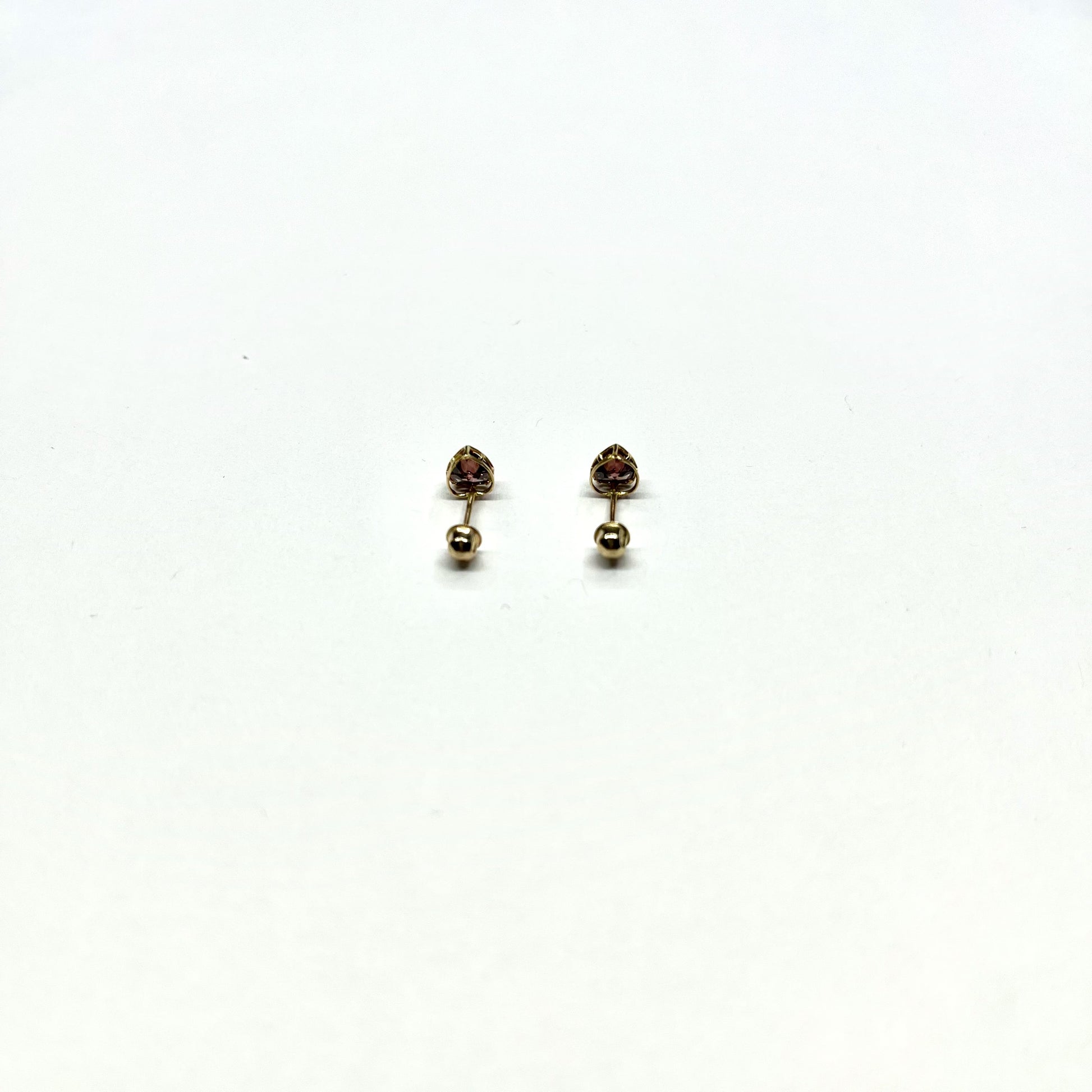 14KY 3mm Heart CZ Bezel Screw Back Stud Earrings (JUN)
